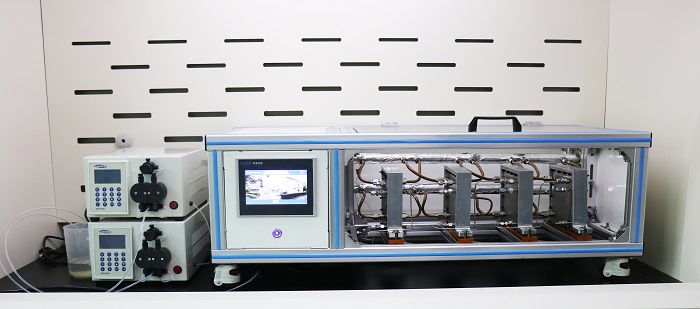 為了方便研究人員掌握反應(yīng)進(jìn)程和進(jìn)行工藝優(yōu)化,K1反應(yīng)器每個(gè)板式反應(yīng)單元均設(shè)有3個(gè)內(nèi)測(cè)溫點(diǎn),分別對(duì)應(yīng)流道約30%、50%、80%的位置。此外,還設(shè)有導(dǎo)熱油進(jìn)出口的測(cè)溫點(diǎn),可以方便的在觸摸屏上讀取實(shí)時(shí)溫度數(shù)據(jù)和導(dǎo)出溫度曲線。
